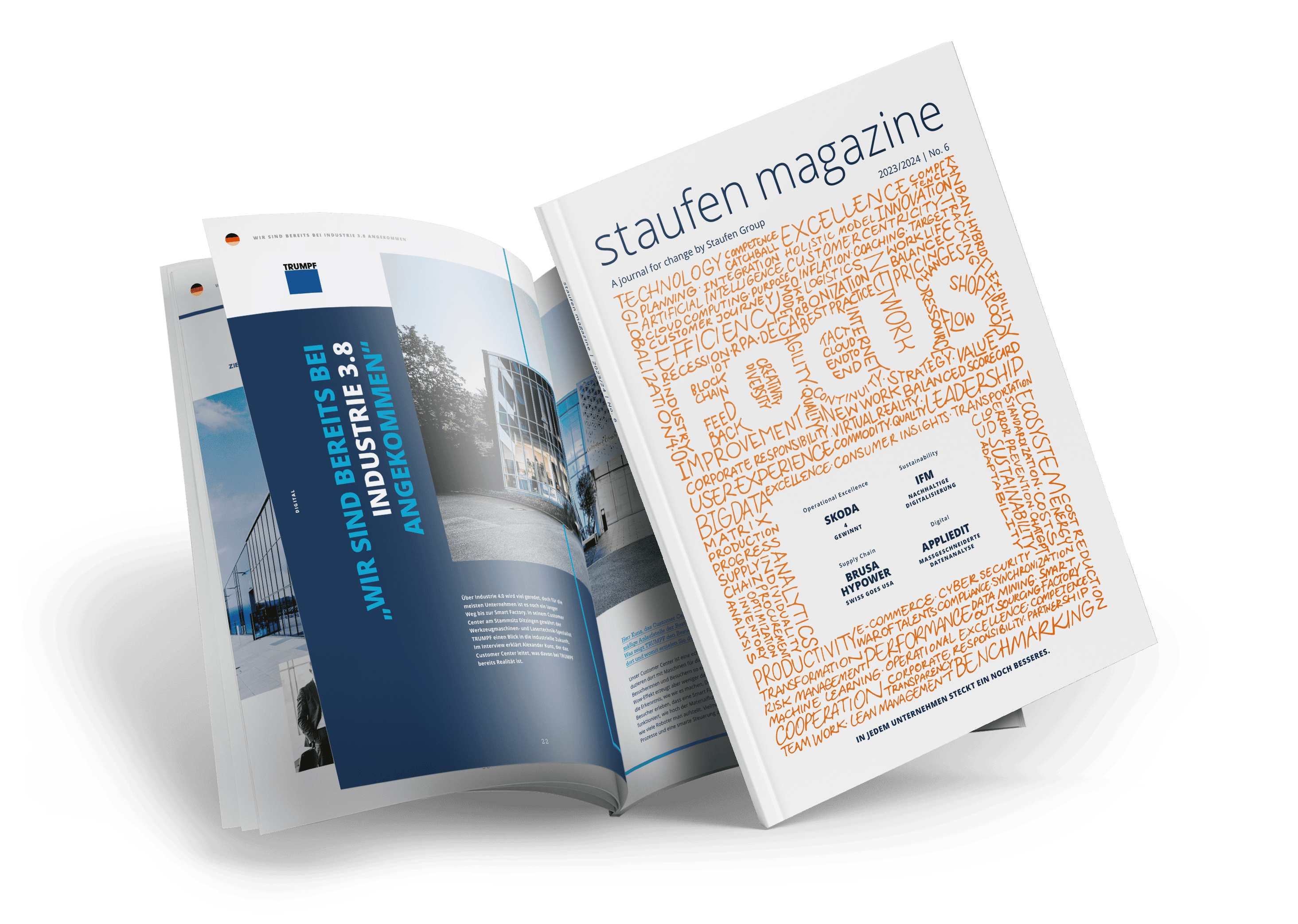 In the new STAUFEN. Magazine we have collected several Success Stories, interviews and testimonials from leading companies from all over the world, telling their own journey of change towards Top Performance.
